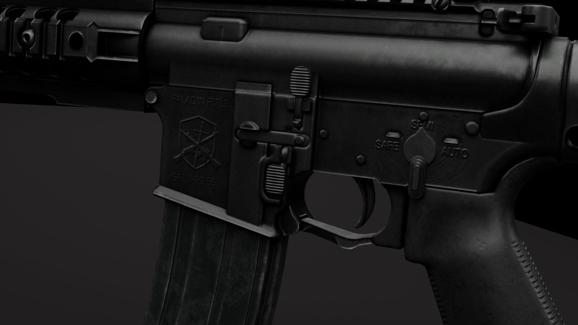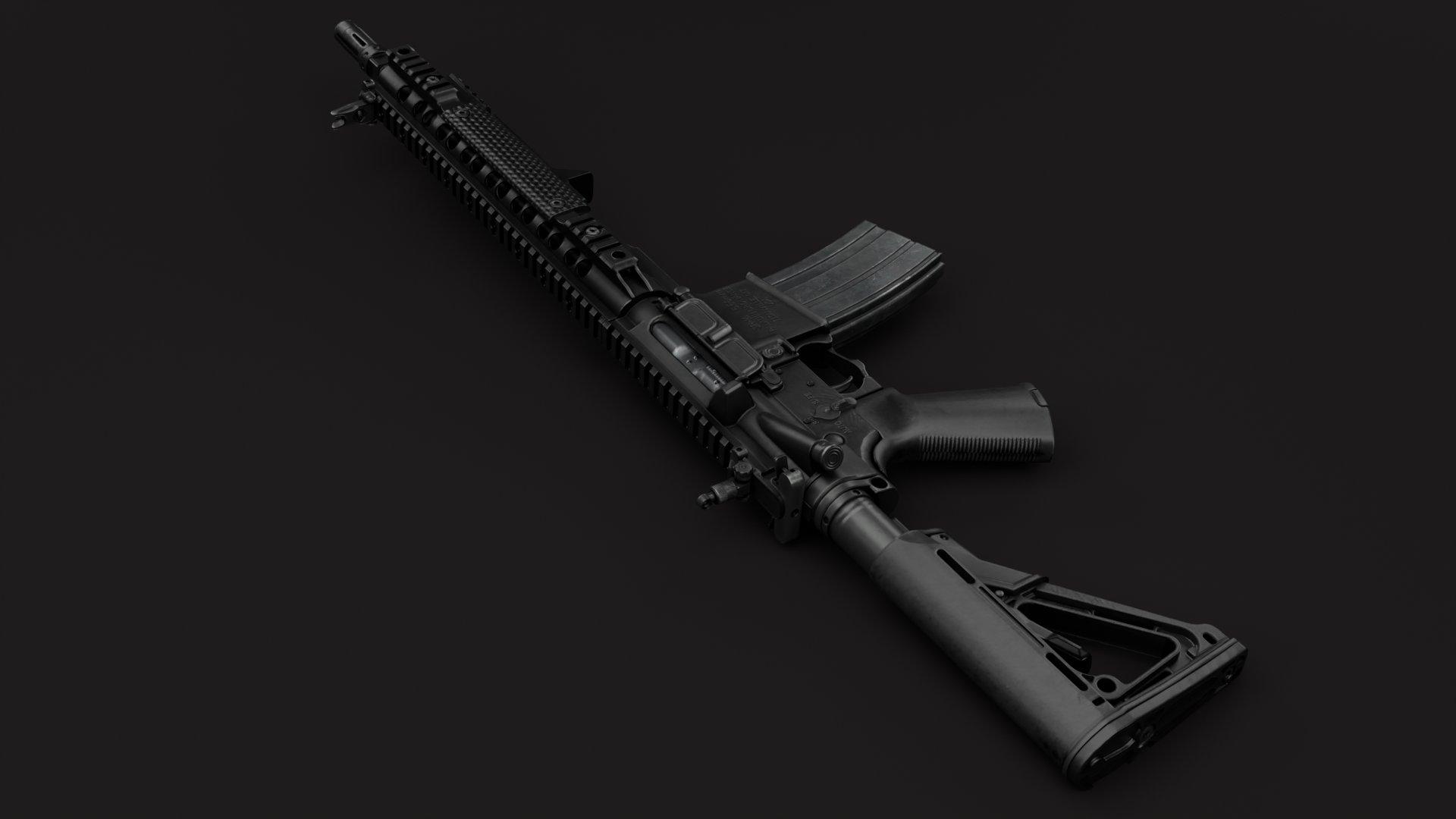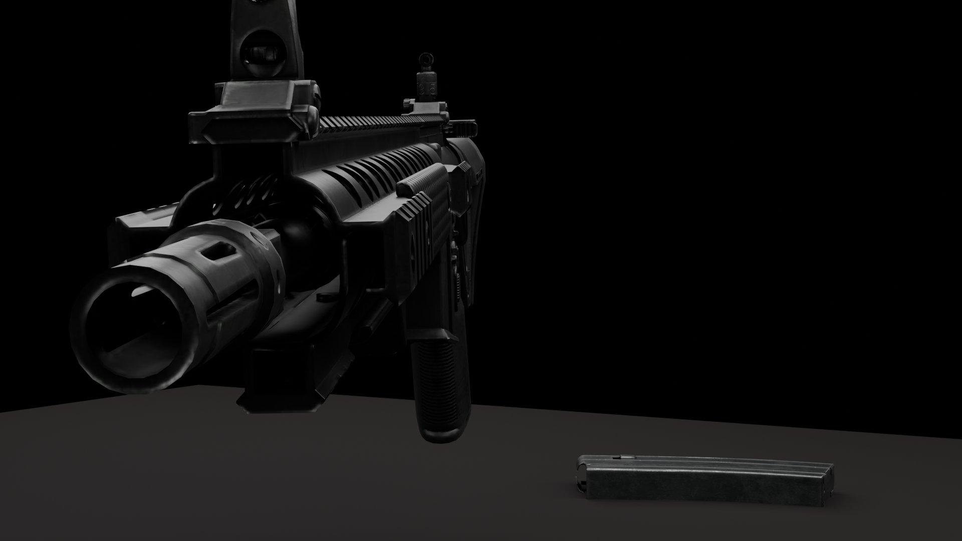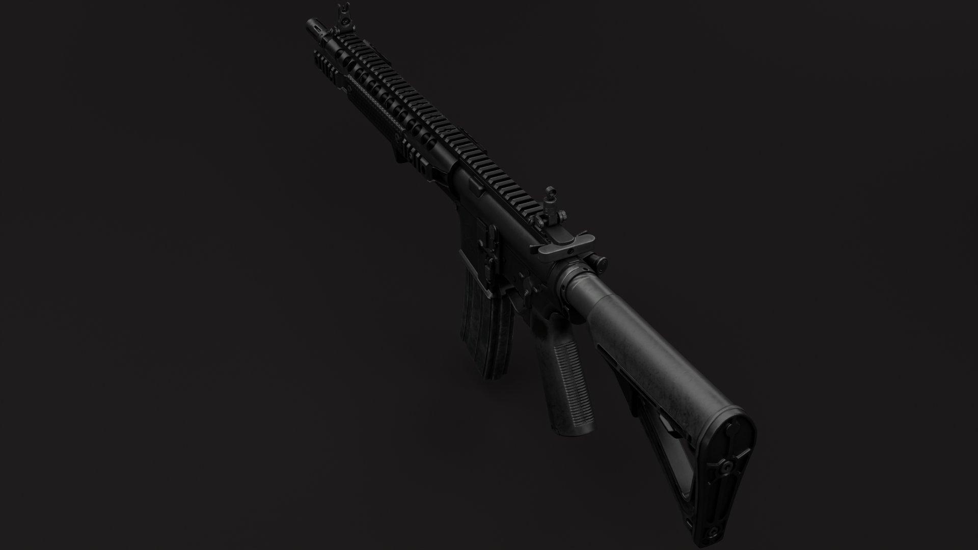 Эта модель винтовки — SR16. Рендеринг выполнен в Cycles. Кости присутствуют, но 3D-модель не имеет анимации, однако детальную анимацию можно легко создать с помощью костей. Магазин отсоединяется от винтовки.