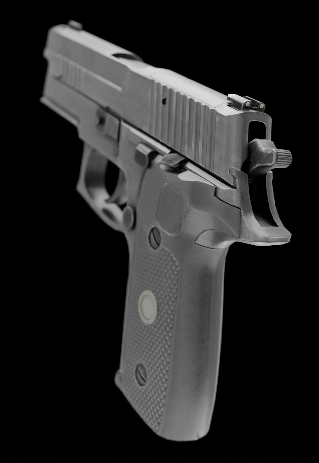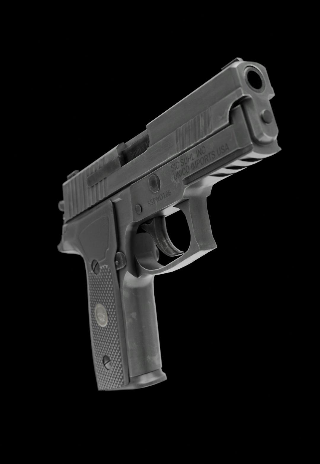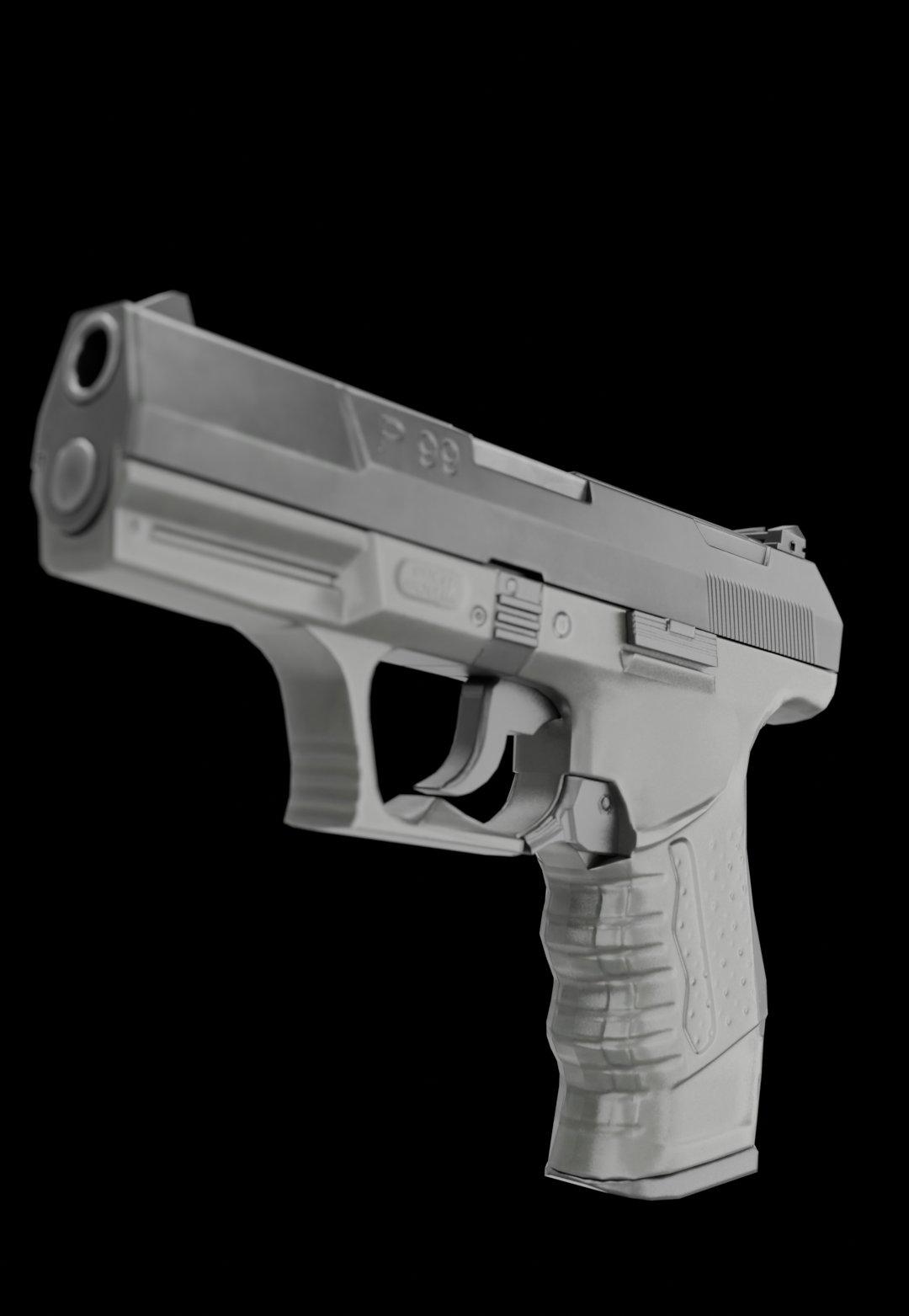 This set contains two 3D weapon models: the SIG Sauer P229 and the Walther P99. The SIG Sauer P229 has 11,261 vertices and 19,686 faces. The Walther P99 has 7,636 vertices and 10,185 faces. Each model features a rig and a detachable magazine. The render was done in Cycles. Formats: FBX, OBJ, blend.
